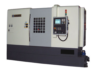 The center designed with 6 controllable axes of X, Y, Z1, Z2, C1 and C2, of which 4 are simultaneously controlled, is specially suitable for turning, milling, drilling and tapping of various complex chuck-type, sleeve-type and shaft-type work. Opposed double-spindle structure can perform parts exchange during high-speed operation. Equipped with 12-station servo power turret with which rear-side machining is possible, the machine can complete all machining of a part; therefore, it saves setting and machining time in great deal and improves productivity greatly. (In case of sub-spindle). Motor spindle structure runs smoothly, and produces parts to high surface finish and close geometrical shape error. (In case of sub-spindle). C-axis function for both spindles makes it possible for either of them to index and to do circular interpolation on multi-axis. (In case of sub-spindle). Due to large-travel Y-axis and length & breadth milling function, operations of turning, milling, drilling and tapping on cylindrical face and both ends of work are performed in a single setting, thus eliminates error caused by frequent setting, and ensures machining accuracy. The advantage is more obvious in machining complicated parts. |